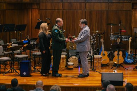 En la ceremonia, el presidente de la Comisión Interventora, General José Miguel Mejía, entregó un reconocimiento especial al Viceministro de Defensa Nacional, Orlando Garner Ordóñez, por su valioso apoyo en la gestión de los centros penitenciarios.