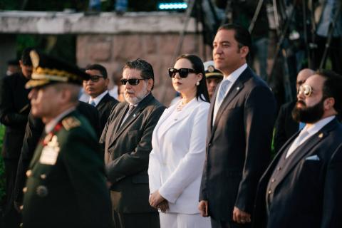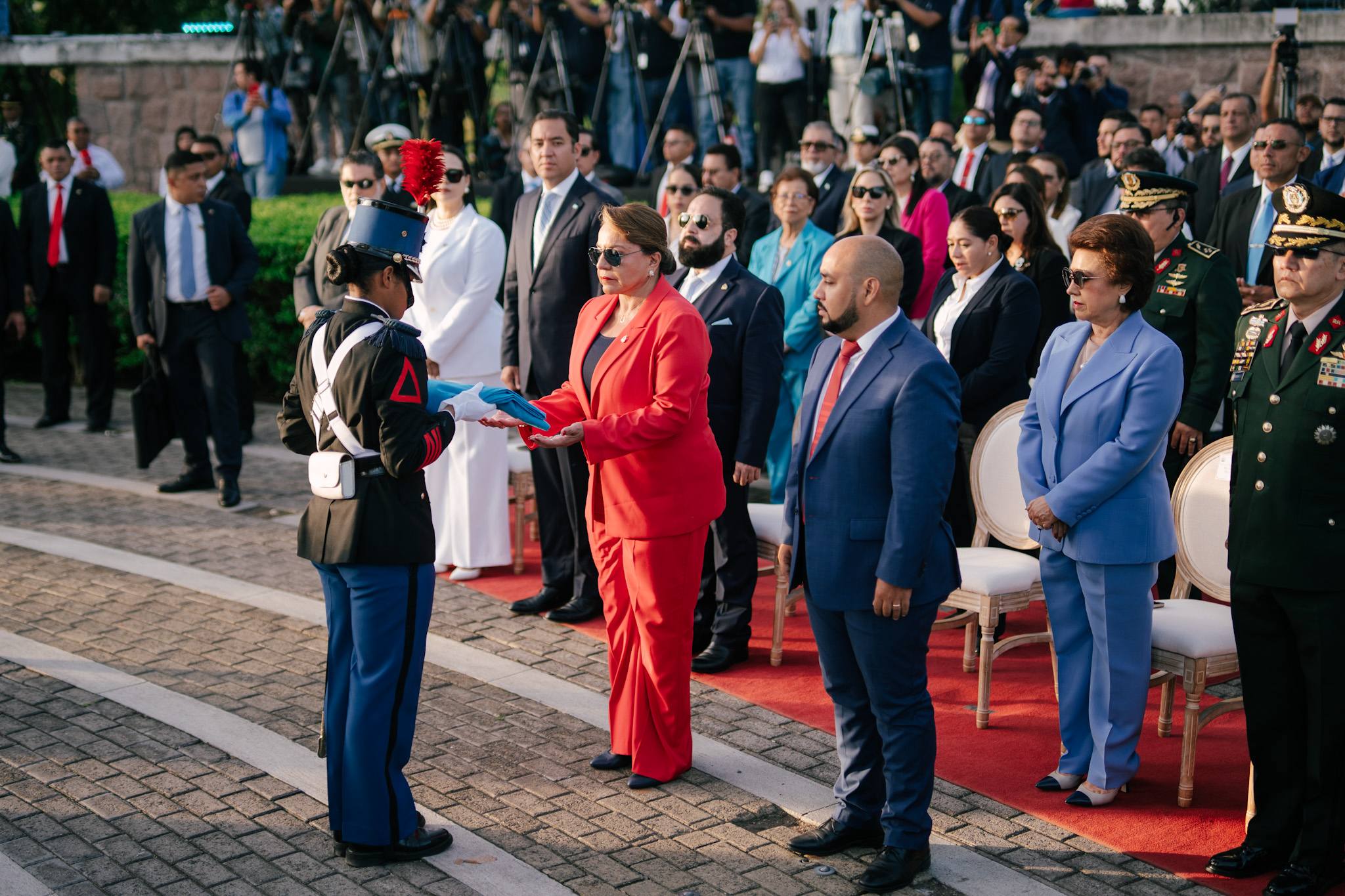 En el marco del Día de la Bandera Nacional y como acto inaugural del mes patrio, la presidenta de la República, Xiomara Castro, encabezó este jueves la solemne ceremonia de izada del Pabellón Nacional, acompañada de las más altas autoridades del Estado.