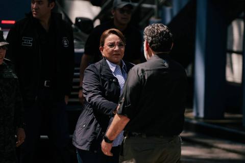 La Presidenta de la República y Comandante General de las Fuerzas Armadas, Xiomara Castro, fue recibida este viernes por el Viceministro de Defensa Nacional, Orlando Garner Ordóñez, el Jefe del Estado Mayor Conjunto, General Roosevelt Hernández, y la Junta de Comandantes de las Fuerzas Armadas de Honduras, en las instalaciones del Estado Mayor Naval.